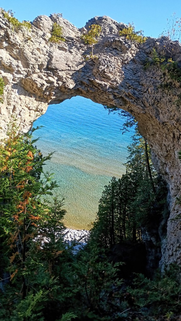 Abstract of “Bar Harbor Shoreline”, by Sally Stubbs“Rose” by John PichaHudson Springs Park, Hudson, Ohio by Jim Bennett“Natural Arch on Mackinac Island” by Jim Bennett